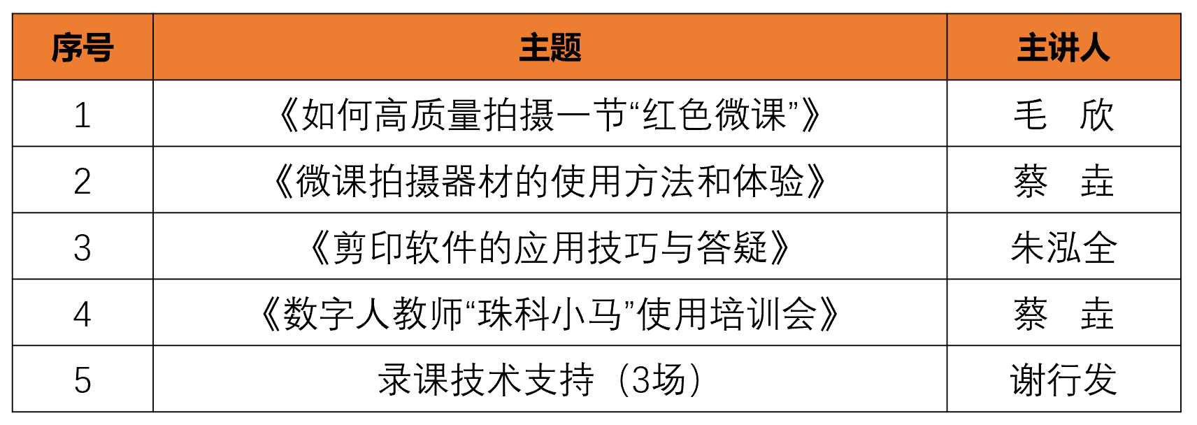 微课制作技能培训活动一览表